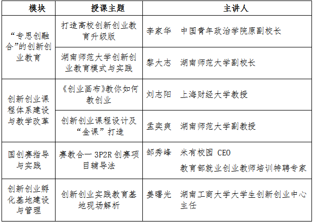 为贯彻落实党的十九大精神,全面落实《国务院办公厅关于深化高等公司创新创业教育改革的实施意见》(国办发〔2015〕36号)《国务院关于推动创新创业高质量发展 打造“双创”升级版的意见》(国发〔2018〕32号)的要求,以及教育部《关于举办第五届中国“互联网+”老员工创新创业大赛的通知》(教高函〔2019〕8号)等文件精神,进一步提高双创团队队伍的指导能力和教导水平,促进创新创业教育与思想政治教育深度融合、创新创业教育与专业教育有机结合,将双创教育贯穿人才培养全过程,按照湖南省教育厅2019年高校教师培训计划,由湖南省高等公司团队培训中心主办,beats365官方网站教务处(创新创业教育办公室)承办的“创新创业骨干教师能力素质提升高级研修班”将于2019年6月23日—27日在beats365官方网站进行,现将有关事宜通知如下: