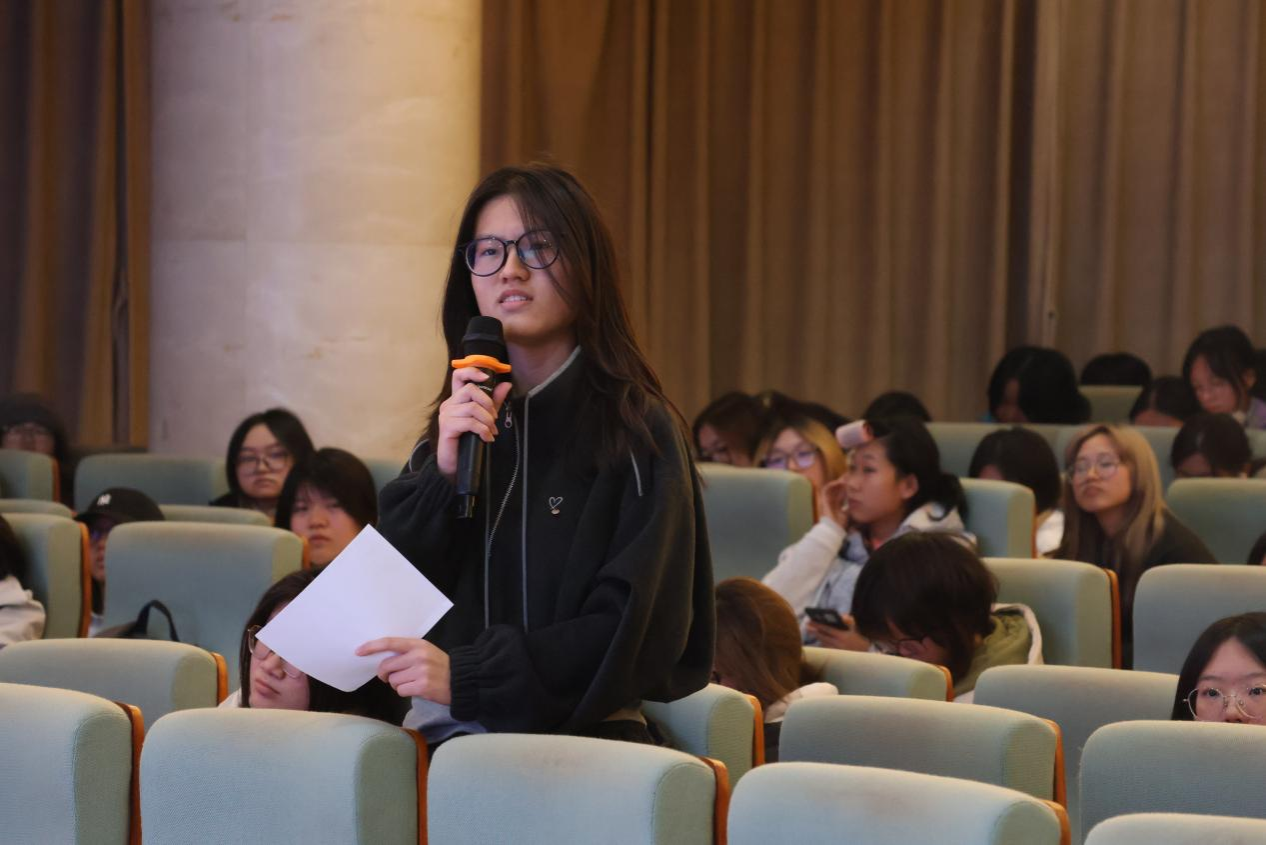 在互动环节中,学子们围绕纹样设计转化、创新创业突破路径、AI与传统文化融合等话题踊跃提问,周彧彬老师逐一予以细致解答。他指出纹样创新应注重意义与设计初衷的关联性,要保持其典型性延续,而非简单拼贴;鼓励员工向纹样研究的细分领域切入,勇于深耕小众赛道;此外,他还与学子们共同探讨了AI技术在传统纹样数据库中的应用,以及如何通过AI促进传统文化创新的同时保持文华独特性。